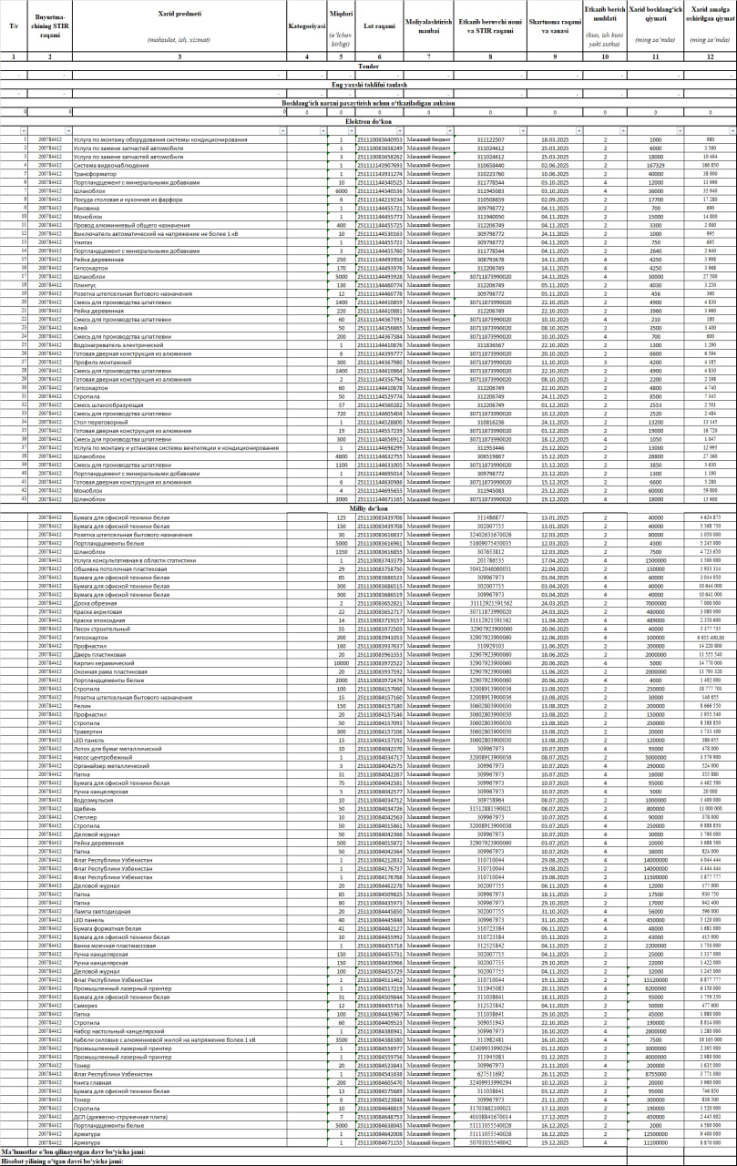 Amalga oshirilgan davlat xaridlari to‘g‘risidagi MA’LUMOTLAR