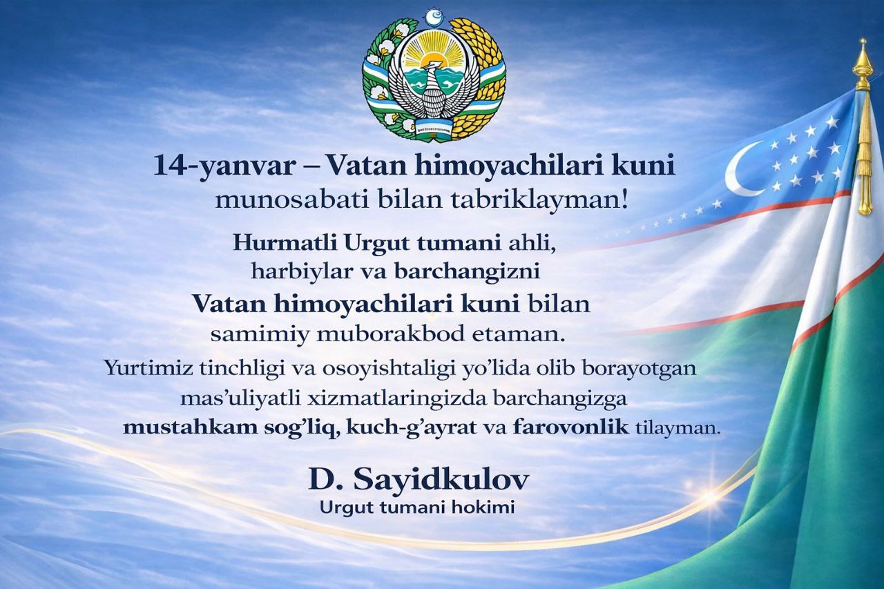Urgut tumani hokimi D.Sayidkulovning bayram tabrigi